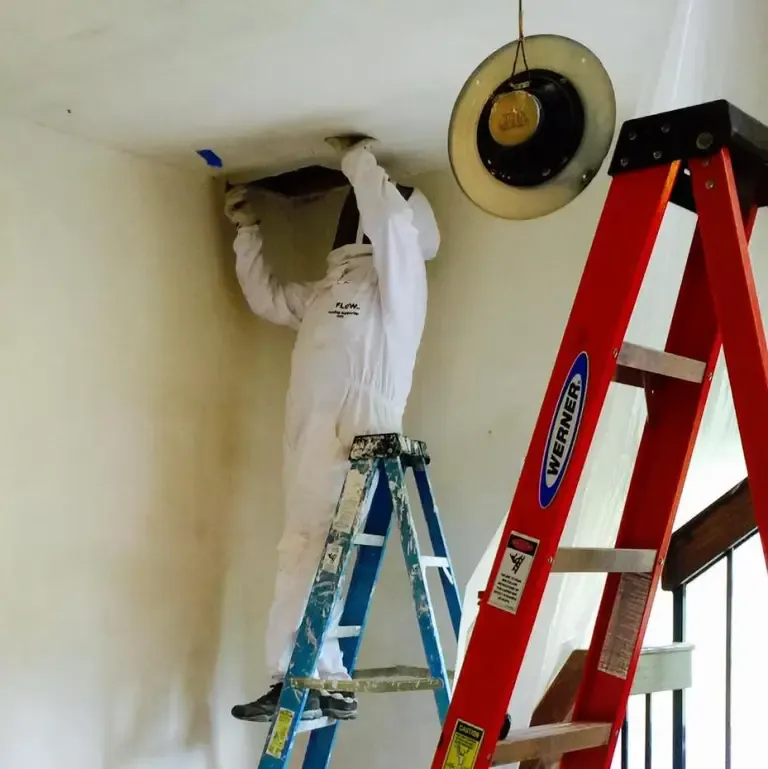 Ralph Payan opening a ceiling to relocate a colony of bees. A feral colony is sometimes accessed from the inside of the structure.