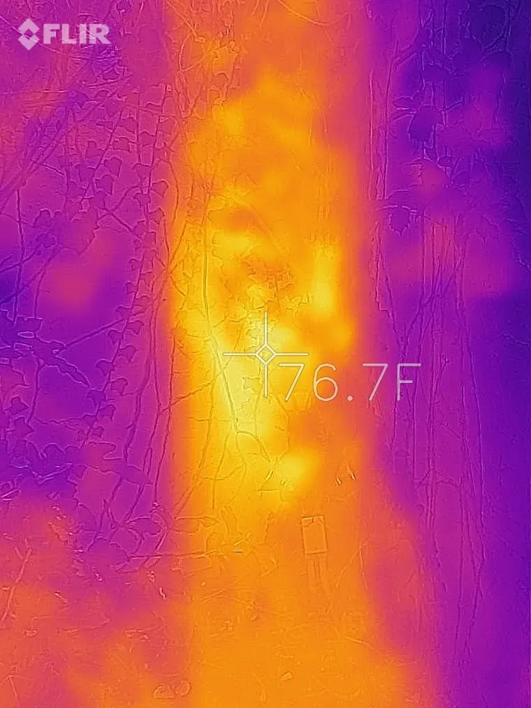 A FLIR image of a colony that made their home in an outside wall. This colony was about 10 ft high and 24 inches wide. It had been there for years. The image was taken in El Paso and the relocation was done by Josh Meier, Joshua O’Halloran, and Bill Hooten. (FLIR image by Bob Reneau)