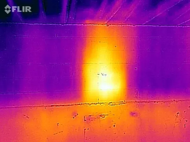 A FLIR image of a colony that made their home in a cinder block wall built above a solid concrete wall in Canutillo, Texas. The honey bee colony was relocated by Jim Jordan. (FLIR image by Bob Reneau)