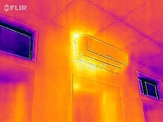 A FLIR image of a colony that made their home in a wall behind an air conditioning unit at the Tortugas Community Center in Las Cruces, NM and the relocation was done by Erica Perras, Tray Spencer, and Bill Hooten. (FLIR image by Bob Reneau)